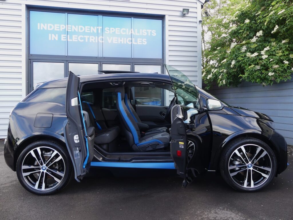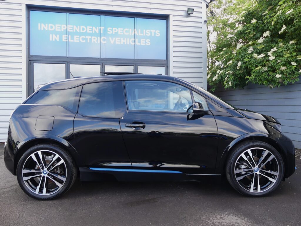 The iconic BMW i3 S with the larger 42kWh battery and a great spec. These cars are quick - 0-62mph in 6.7 seconds, extremely responsive and fun to drive. Executive in Fluid Black with Atelier world cloth interior and blue seatbelt upgrade. 431 20” double spoke diamond cut alloys and rare electric tilt and slide sunroof. Larger media professional screen, Apple CarPlay prep, upgraded Harmon Kardon sound, online entertainment, sat nav, Driver Assistant Traffic Jam Assist, rear-view camera, parking sensors front and rear, heated seats, climate control, LED headlights and comfort access (keyless entry). DC Prep enabled for 45-minute rapid charging. Balance of BMW HV battery warranty to April 2029 and 6 months' EV specific WarrantyWise warranty from point of sale. Battery state of health 2% ahead of target for age at 96%. Full BMW service history (last in May 23). 3-pin to type 2 EV charging cable included. ULEZ compliant and road tax/congestion charge free to 2025! We are not tax experts but we know that electric cars benefit from very attractive company car tax (benefit in kind) monthly rates: from £13-£29 in 2024/25 rising to £20-£44 in 2025/26. One previous owner and VAT Qualifying.