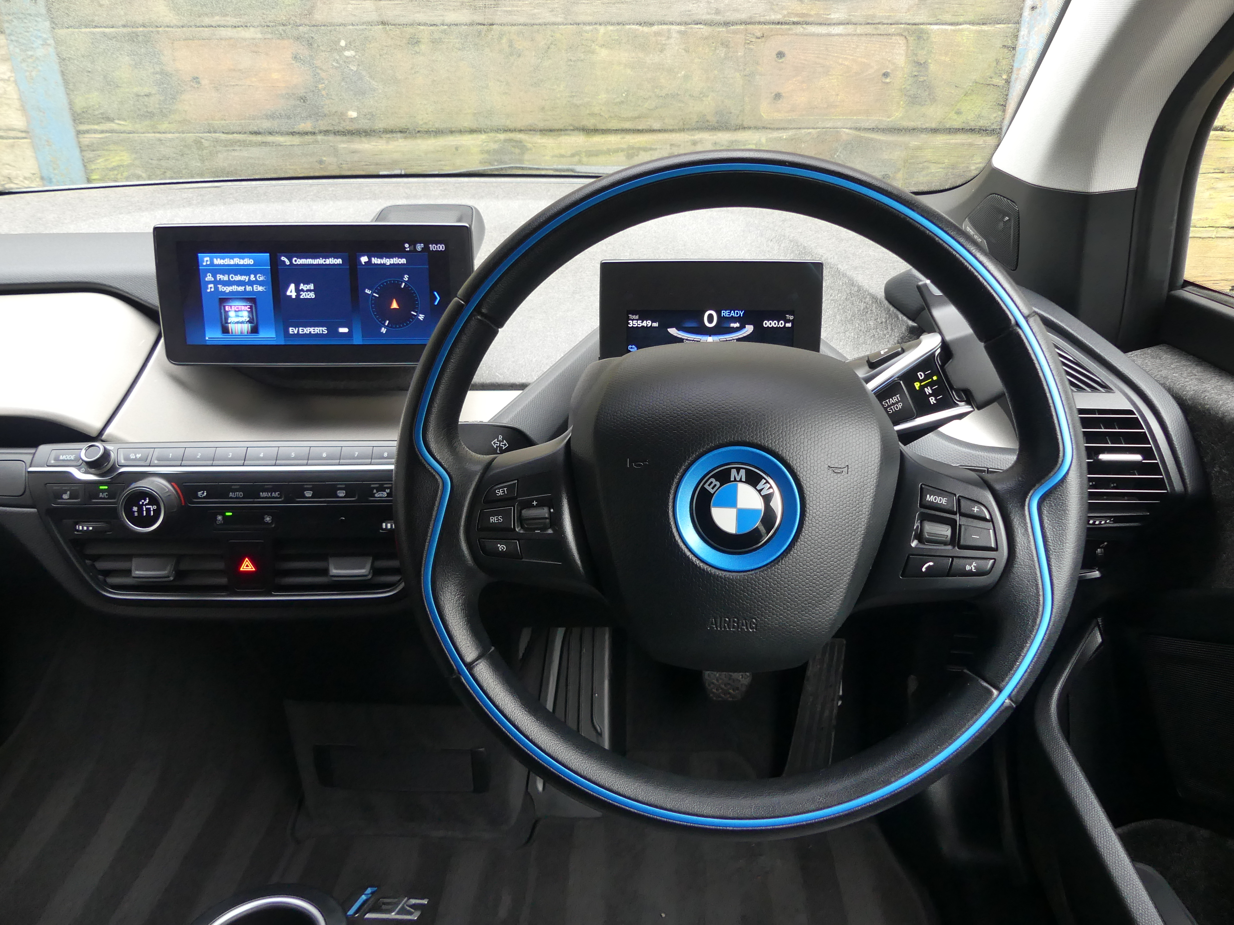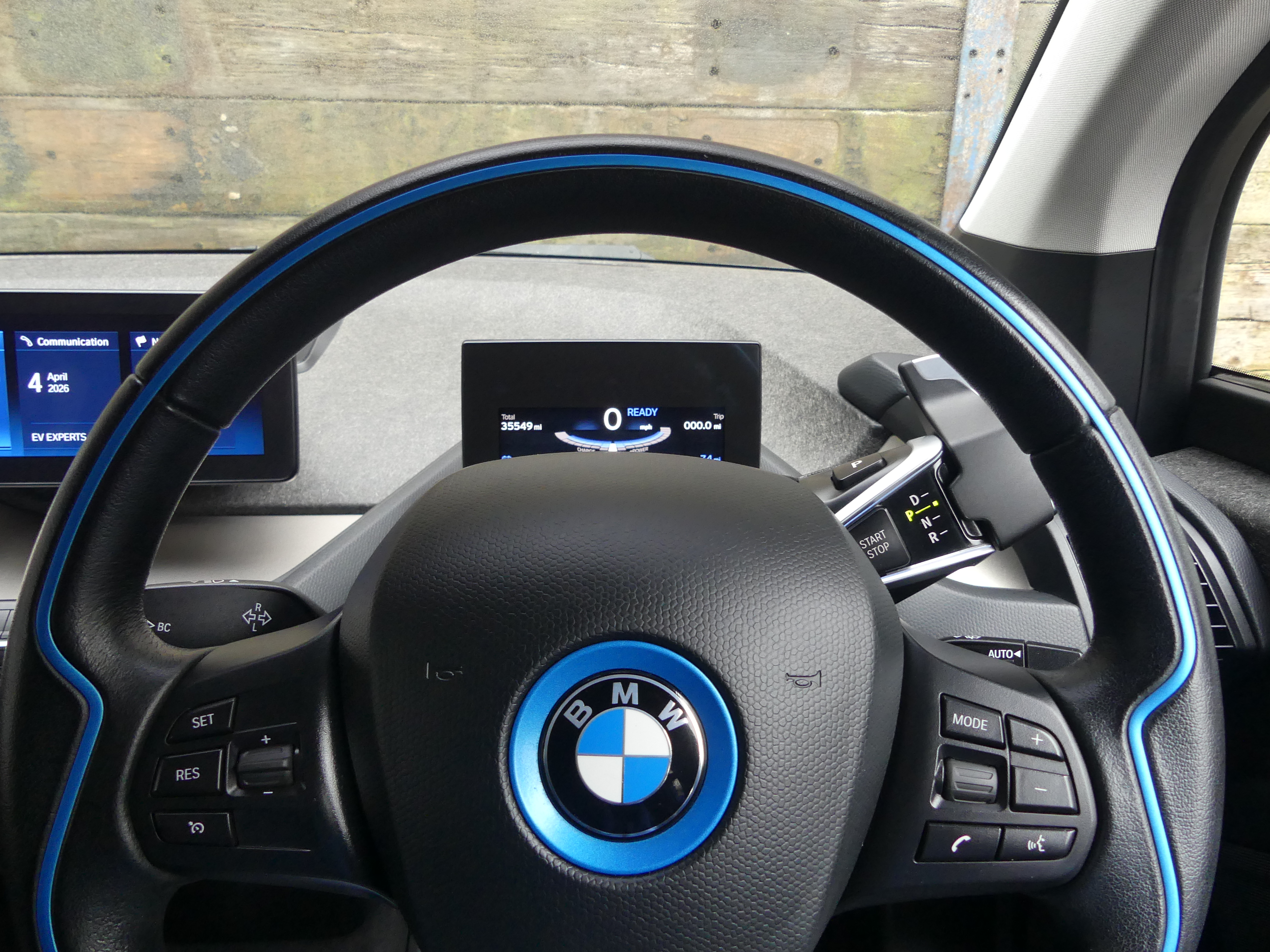 BMW's iconic fully electric i3 S with around 140 miles of realworld range and 45 minute DC rapid charging at 50kWh. Brilliant performance, a lot of fun to drive and slightly quicker with a wider wheelbase and lower suspension than the standard i3. Classic in Mineral Grey metallic with Atelier world aragats grey cloth interior, andesit silver dash and upgraded 431 20” double spoke jet black alloys. Larger media pro screen, upgraded Harmon Kardon surround sound with speakers front and rear, cruise control, front and rear parking sensors, LED headlights and sat nav. For comfort the front seats are heated plus auto climate control. Balance of BMW HV battery warranty to Nov 2027 and 12 months warranty from WarrantyWise from date of sale. Fantastic battery health, well ahead of target for age at 94%. Full BMW service history (last serviced Nov 25). 3-pin to type 2 EV charging cable or fast EV charging cable depending on your charging requirements. We are not tax experts but we know that electric cars benefit from very attractive company car tax (benefit in kind): £27-£59 a month in 2026/27. Part exchange car in lovely condition.