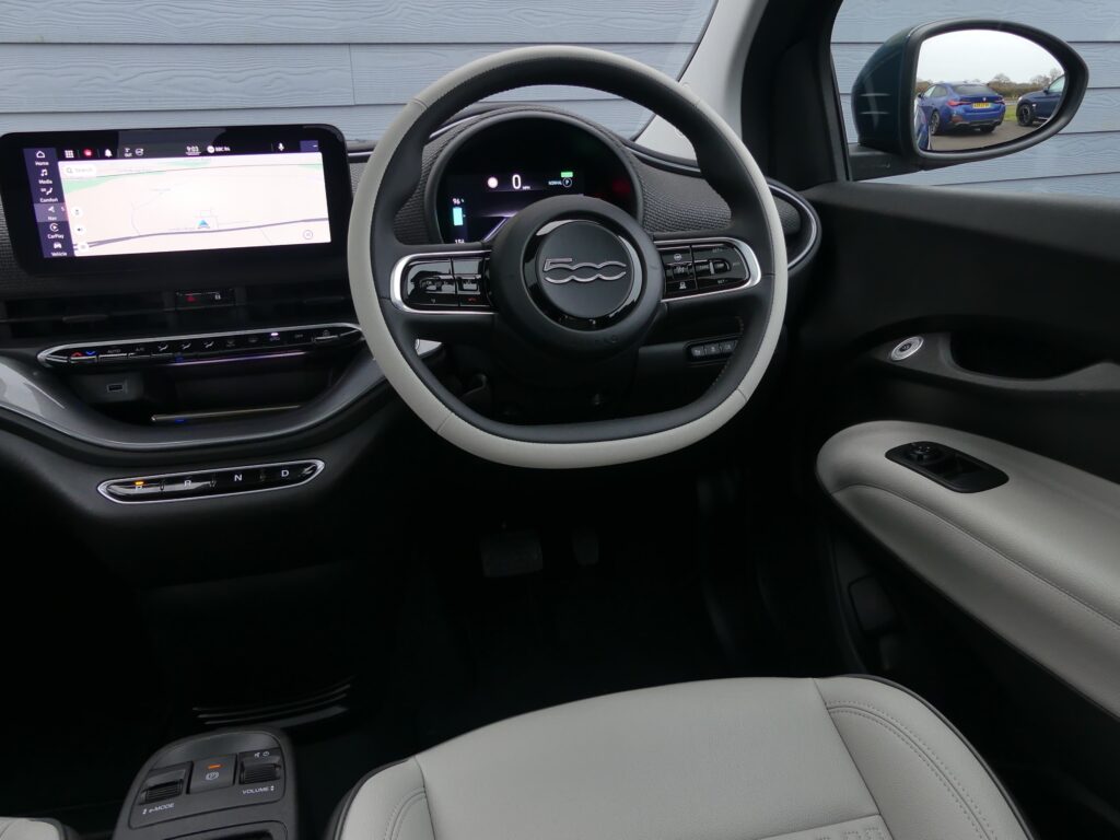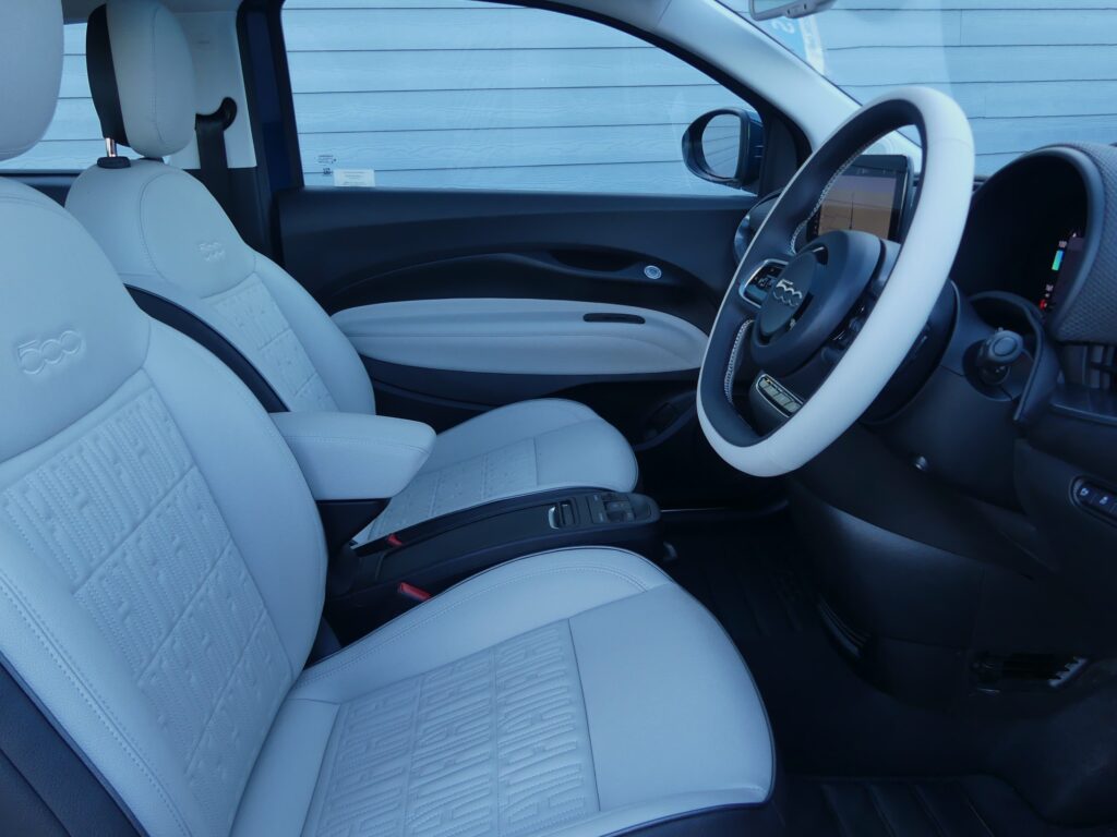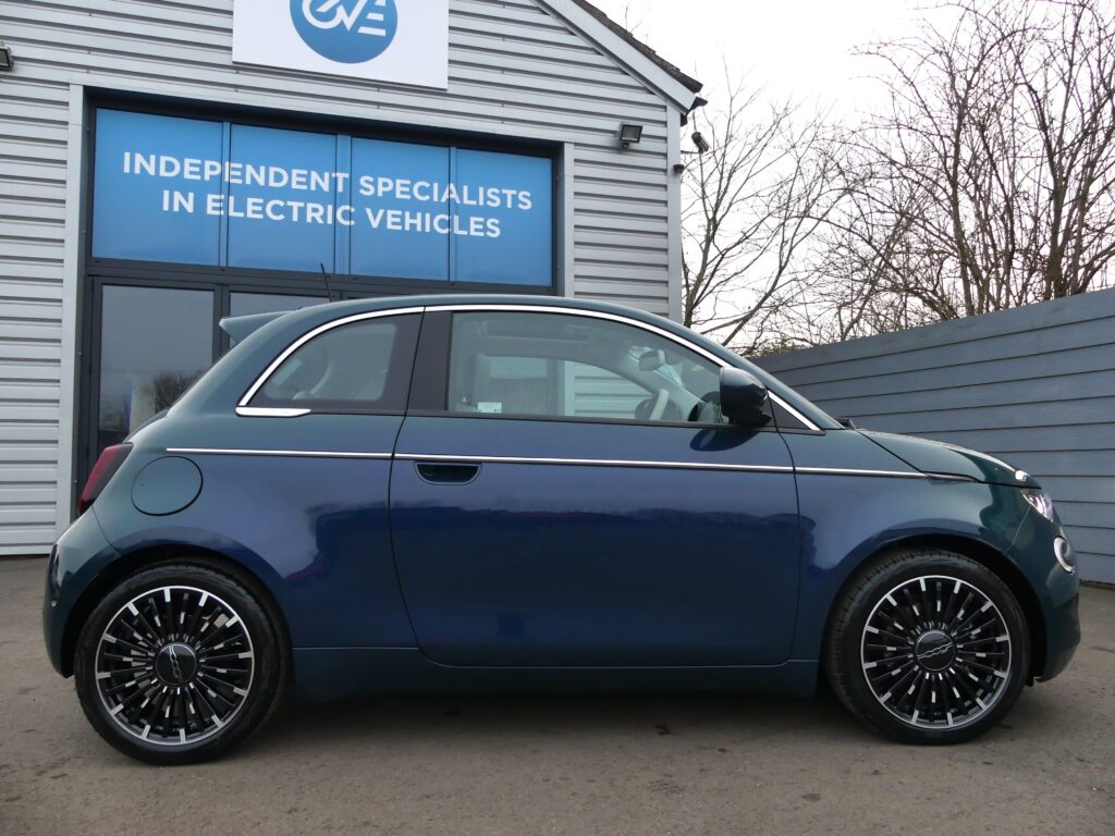 Reinvented and modern tribute to the historic 1957 design, the Fiat 500e is impressive. Long range for a supermini and stylish with gorgeous lustrous ocean green-blue paint, a soft-touch cream interior and panoramic sunroof. 17” bi-tone diamond finish alloys. Huge spec with Assisted Driving Level 2 including fatigue assist and blind spot monitoring. Semi-autonomous driving aid Traffic Jam Assist and sat nav with real-time traffic info displayed on a 10.25” touchscreen. Also features wireless Apple CarPlay/Android Auto, DAB radio and Bluetooth, a reversing camera, Park Assist, climate control, LED headlights, electric park brake, auto lights/wipers and rear privacy glass. Full Fiat service history (last service Nov 23). Battery state of health ahead of target for age at 97% (certificated). Balance of Fiat warranties: full to Oct 2024 and HV battery to Oct 2029/100k miles. 3-pin to type 2 and type 2 to type 2 EV charging cables included. ULEZ compliant and road tax/congestion charge free to 2025! We are not tax experts but we know that electric cars benefit from very attractive company car tax (benefit in kind) monthly rates: £10-£23 in 2023/24 rising to £15-£34 in 2025/26. One previous owner.