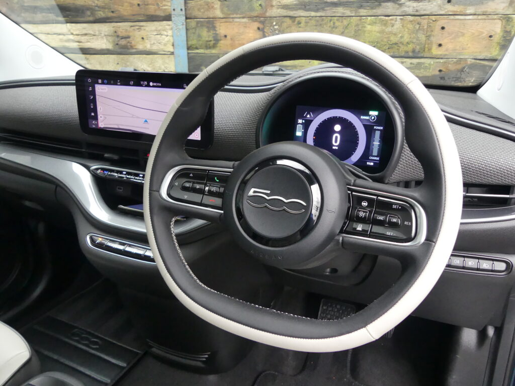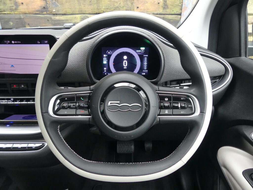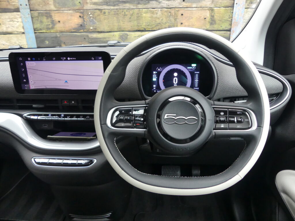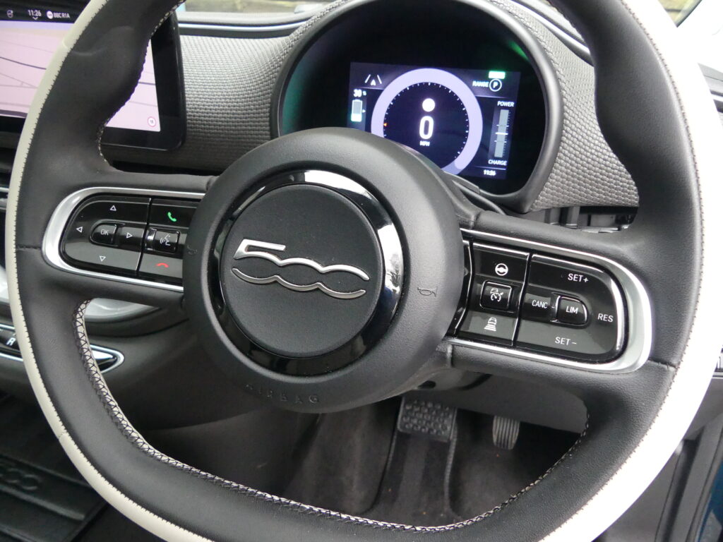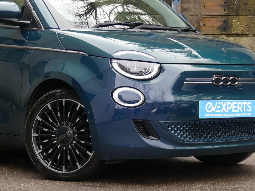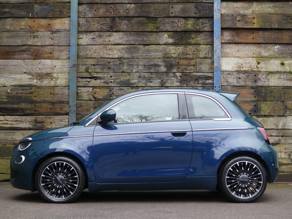 Reinvented and modern tribute to the historic 1957 design, the Fiat 500e is impressive. Long range for a supermini of around 140 realworld miles and rapid charges in under 30 minutes. Stylish with lustrous paint in Ocean Green, a soft-touch cream artificial leather interior and Skylight roof with sunblind. Top spec La Prima 17” bi-tone diamond finish alloys. Fiat Co-Pilot Assisted Driving Level 2, adaptive cruise, traffic jam assist, speed limiter, lane control and dynamic road sign recognition. Full safety shield including autonomous emergency braking, attention and blind spot assist. Sat nav, 10.25” touchscreen, wireless Apple CarPlay/Android Auto, DAB radio, Bluetooth and smartphone charging pad. Park Assist (reversing camera, guidelines, sensors front and rear plus side assist warnings). Climate control, LED headlights with high beam assist, electronic handbrake, auto lights/wipers. 12 months' EV-specific warranty including HV battery from WarrantyWise from date of sale. Great battery health ahead of target for age at 93.7%. Type 2 fast EV charging cable. We are not tax experts but we know that electric cars benefit from very attractive company car tax (benefit in kind): £20-£46 a month in 2026/27. Part exchange vehicle in nice condition and priced accordingly.