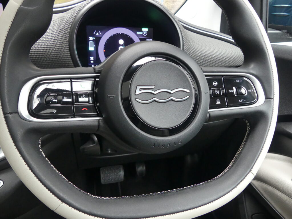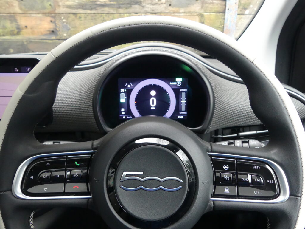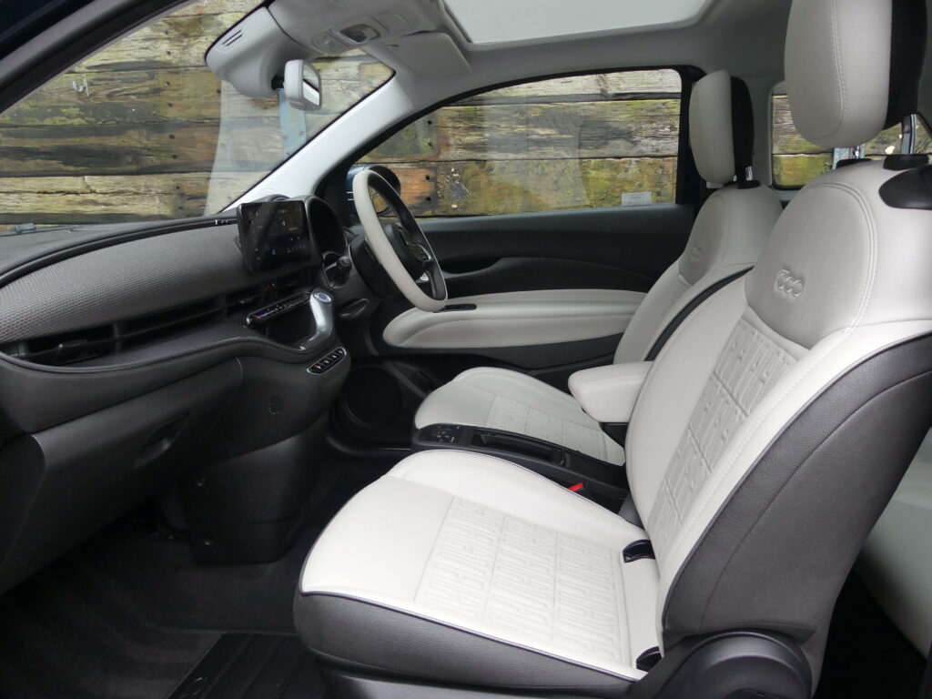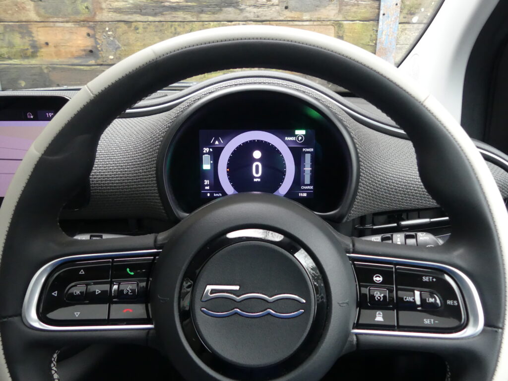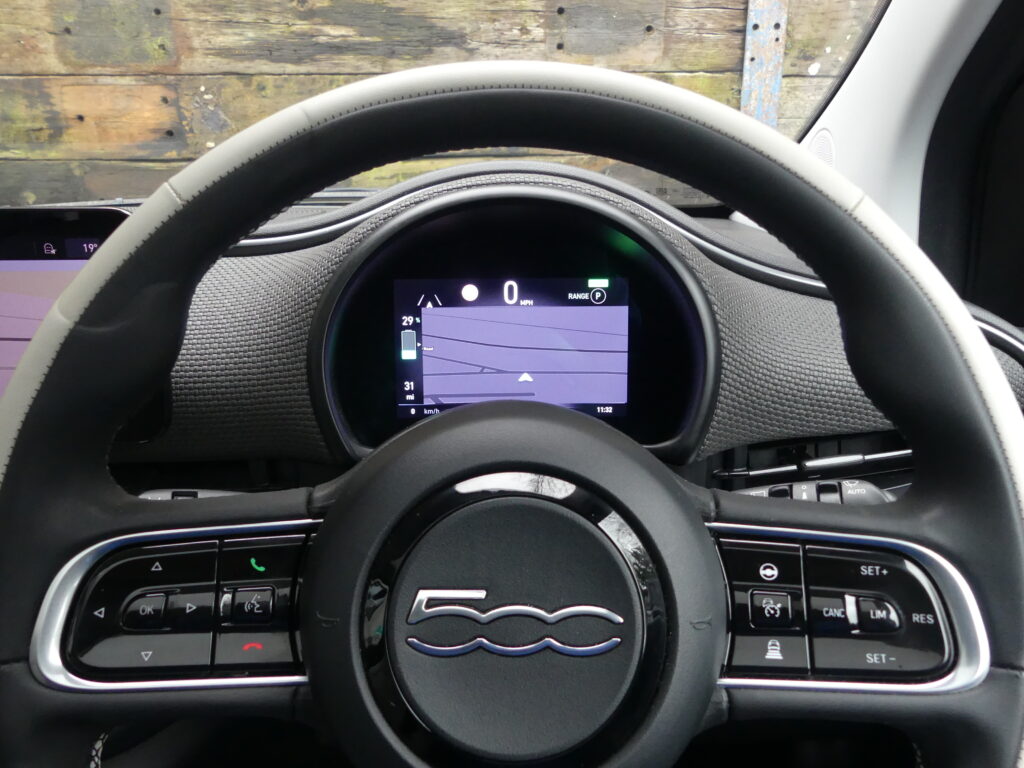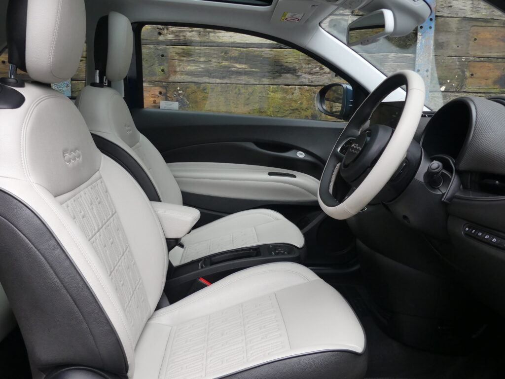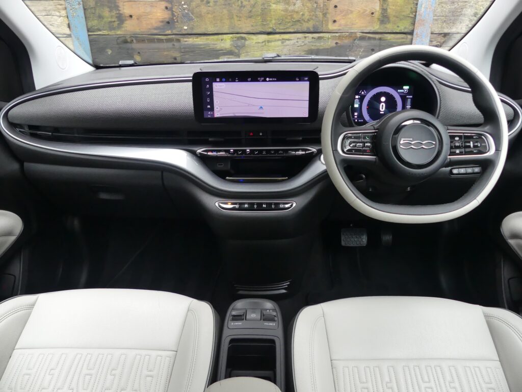 Reinvented and modern tribute to the historic 1957 design, the Fiat 500e is impressive. Long range for a supermini of around 140 realworld miles and rapid charges in under 30 minutes. Stylish with lustrous paint in Ocean Green, a soft-touch cream artificial leather interior and Skylight roof with sunblind. Top spec La Prima 17” bi-tone diamond finish alloys. Fiat Co-Pilot Assisted Driving Level 2, adaptive cruise, traffic jam assist, speed limiter, lane control and dynamic road sign recognition. Full safety shield including autonomous emergency braking, attention and blind spot assist. Sat nav, 10.25” touchscreen, wireless Apple CarPlay/Android Auto, DAB radio, Bluetooth and smartphone charging pad. Park Assist (reversing camera, guidelines, sensors front and rear plus side assist warnings). Climate control, LED headlights with high beam assist, electronic handbrake, auto lights/wipers. 12 months' EV-specific warranty including HV battery from WarrantyWise from date of sale. Great battery health ahead of target for age at 93.7%. Type 2 fast EV charging cable. We are not tax experts but we know that electric cars benefit from very attractive company car tax (benefit in kind): £20-£46 a month in 2026/27. Part exchange vehicle in nice condition and priced accordingly.