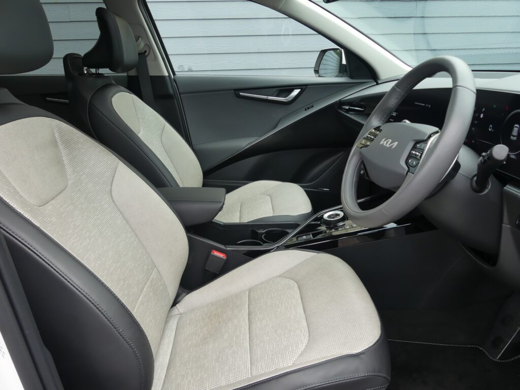 Reliable and comfortable crossover/estate which is super-efficient (up to 285 miles of range), offers single-pedal driving and high-tech spec plus modern, smart, sustainable design. Classic in Pearl White with rare grey pack (C pillar, cladding, grey vegan leather interior), five-petal design 17” alloys and Niro numberplate. Top spec! Android Auto/Apple CarPlay/Kia Connect, integrated 10.25" instrument cluster and touchscreen displays, sat nav, tilt and slide sunroof, LED head/rear and running lights, high beam assist, powered tailgate and wireless phone charger. Powered heated & ventilated front seats with adjustable lumbar and driver memory function, heated outer rear seats and steering wheel. Head-up display, adaptive intelligent cruise, full safety suite with Forward Collision-Avoidance 2.0, blind-spot monitor, lane keep/follow, reversing camera, sensors front/rear, Collision Avoidance Assist and remote Smart Parking 1.0. Battery state of health at 100%. Full Kia warranty to Jan 2030. Type 2 to type 2 EV charging cable and V2L adapter. Road tax for 2025/26 will be £195 (no expensive car supplement). We are not tax experts but we know that electric cars benefit from very attractive company car tax (benefit in kind) monthly rates: £14-£32 in 2024/25 rising to £22-£49 in 2025/26.