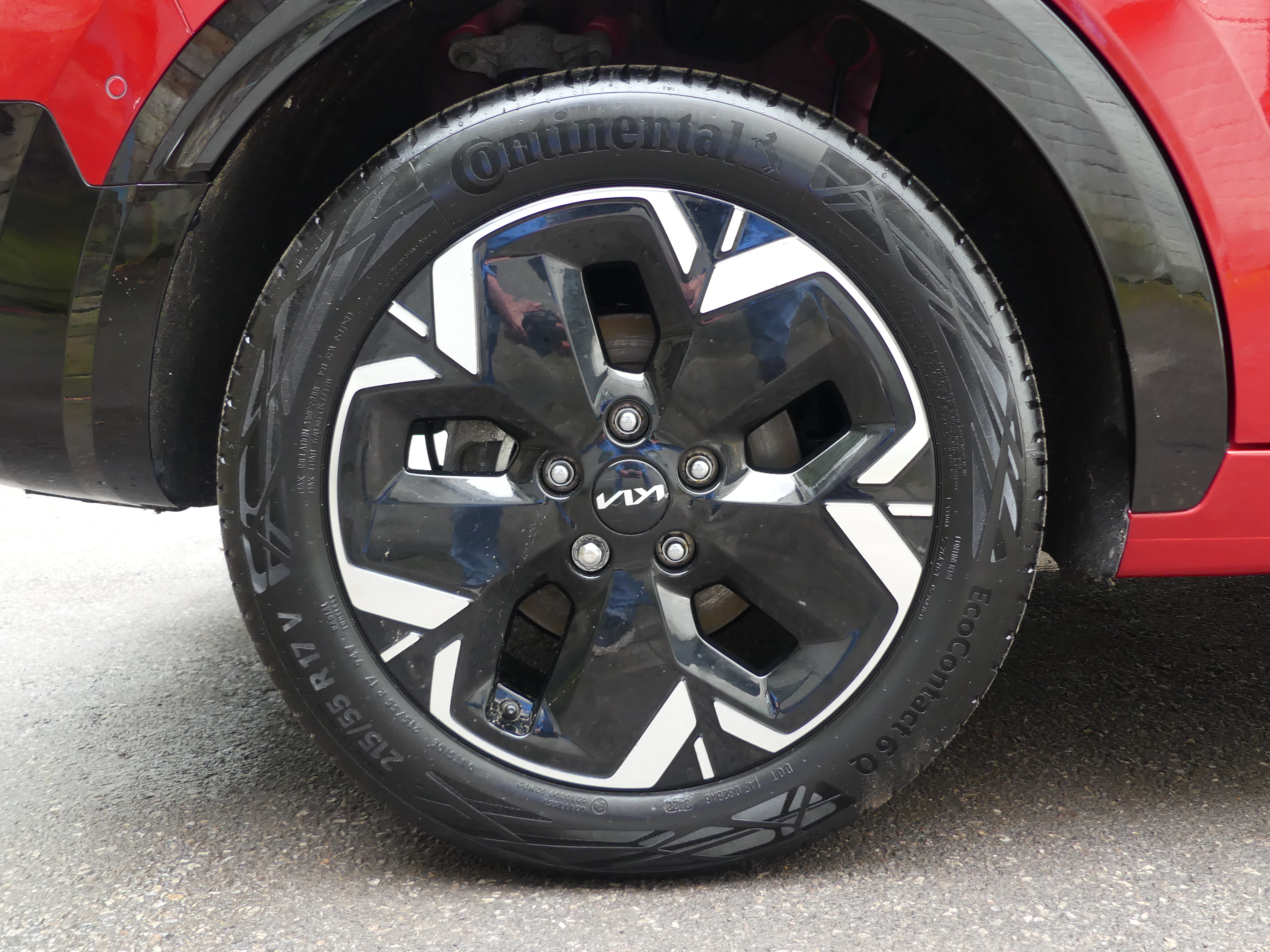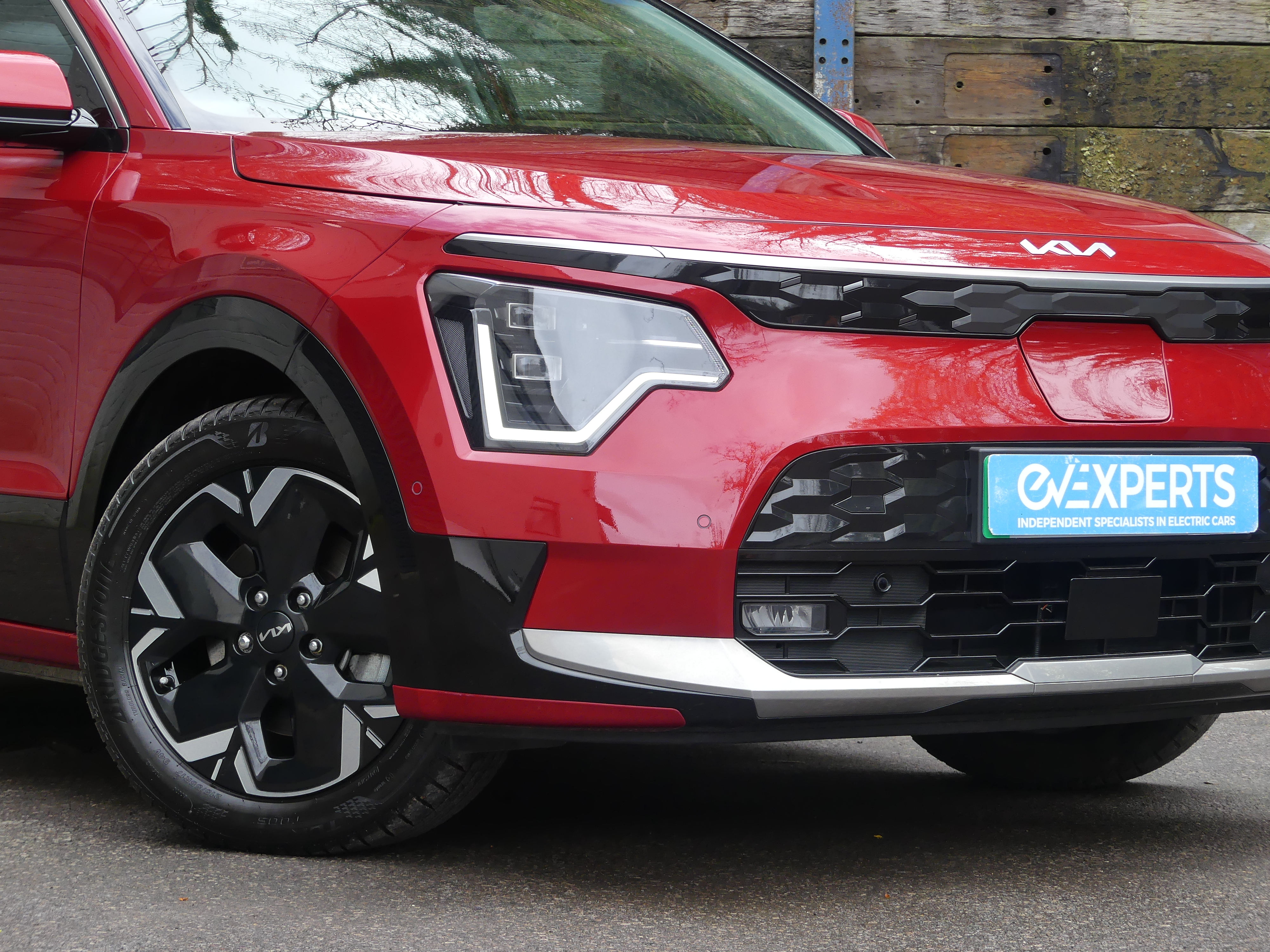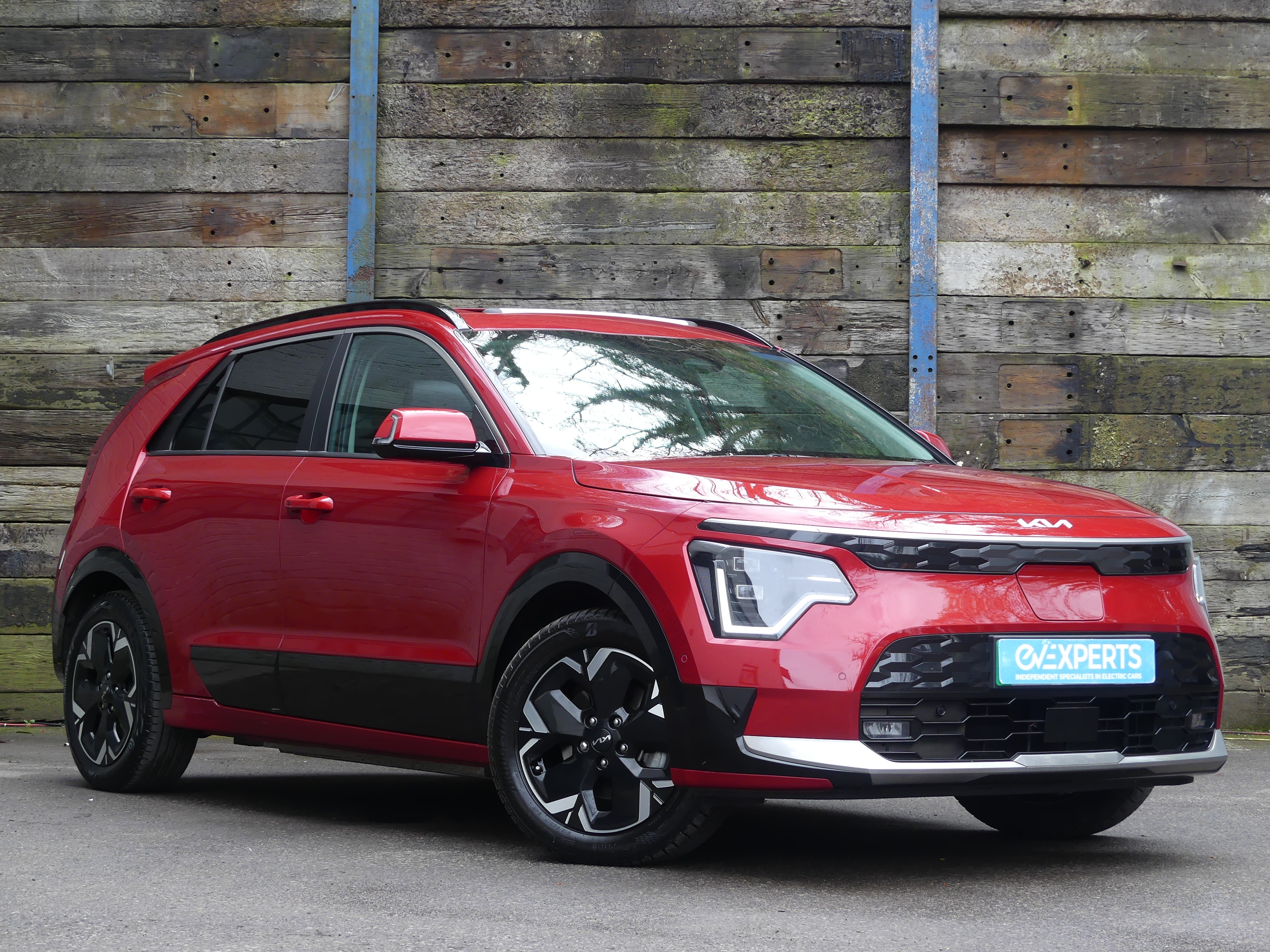 Reliable and comfortable crossover/estate which is super-efficient (around 240 realworld miles of range), single-pedal driving and a high-tech spec plus modern, smart, sustainable design. Classic Runway Red with five-petal 17” alloys and grey vegan leather interior. Android Auto/Apple CarPlay/Kia Connect, integrated 10.25" instrument cluster and touchscreen displays, sat nav, tilt and slide sunroof, LED head/rear and running lights with high beam assist, powered tailgate, keyless entry and wireless phone charger. Powered heated/ventilated front seats, adjustable lumbar support (driver memory), heated outer rear seats & steering wheel. Head-up display, Motorway Driving Assist, adaptive smart cruise control, speed limit assist, full safety suite (Forward Collision-Avoidance Assist, blind-spot monitoring, lane keep/follow assist, rear-cross traffic and safe exit). Parking camera, front/rear sensors and remote Smart Parking Assist. Full Kia service history (Oct 24). Full Kia warranty to Jan 2030. Battery health still at 100%. Type 2 fast charging cable and V2L adapter. Road tax £200 (no expensive car supplement). We are not tax experts but we know that electric cars benefit from very attractive company car tax (benefit in kind): £30-£66 a month in 2026/27. New list price is £42k! One previous owner and VAT Qualifying.