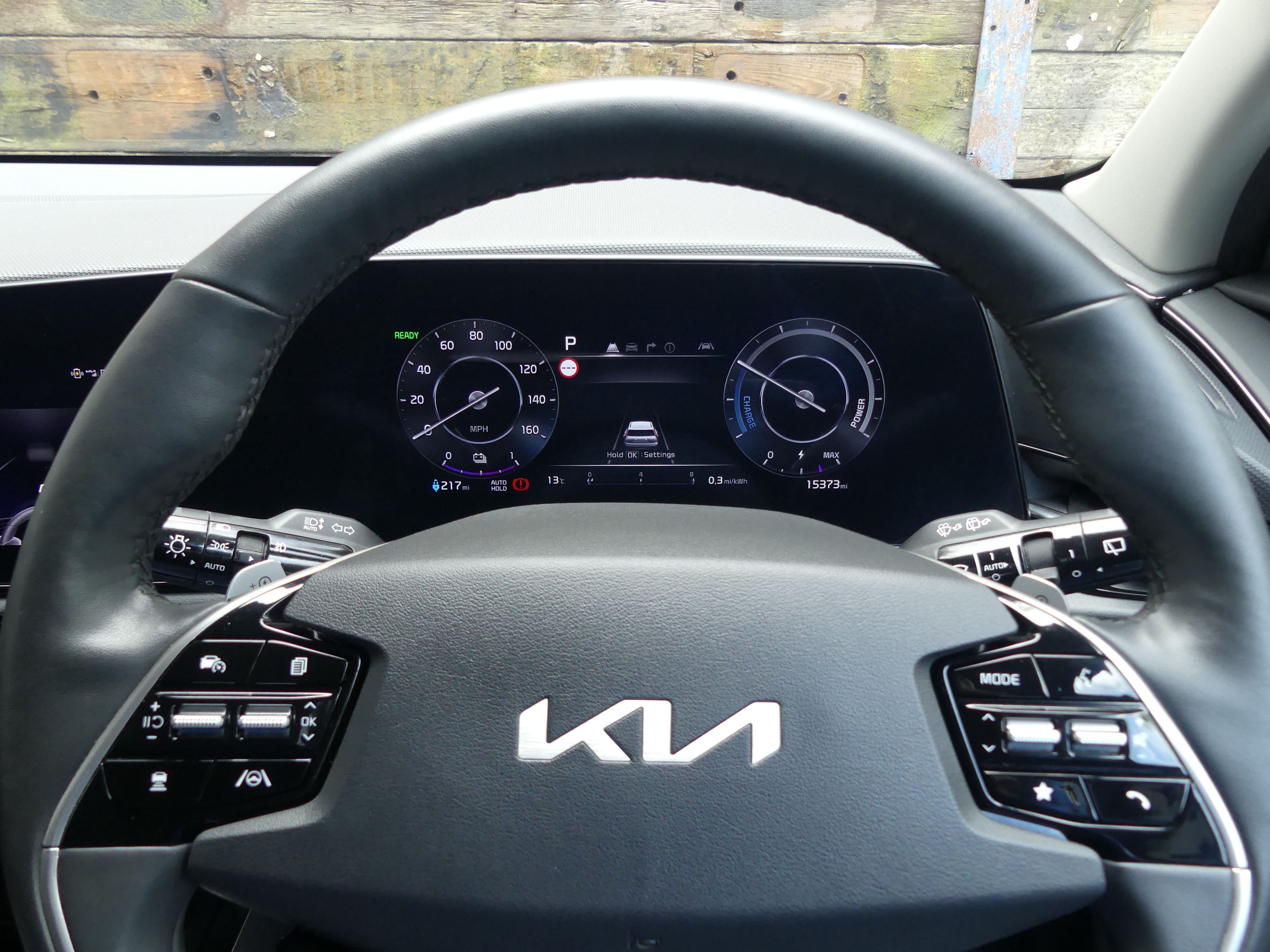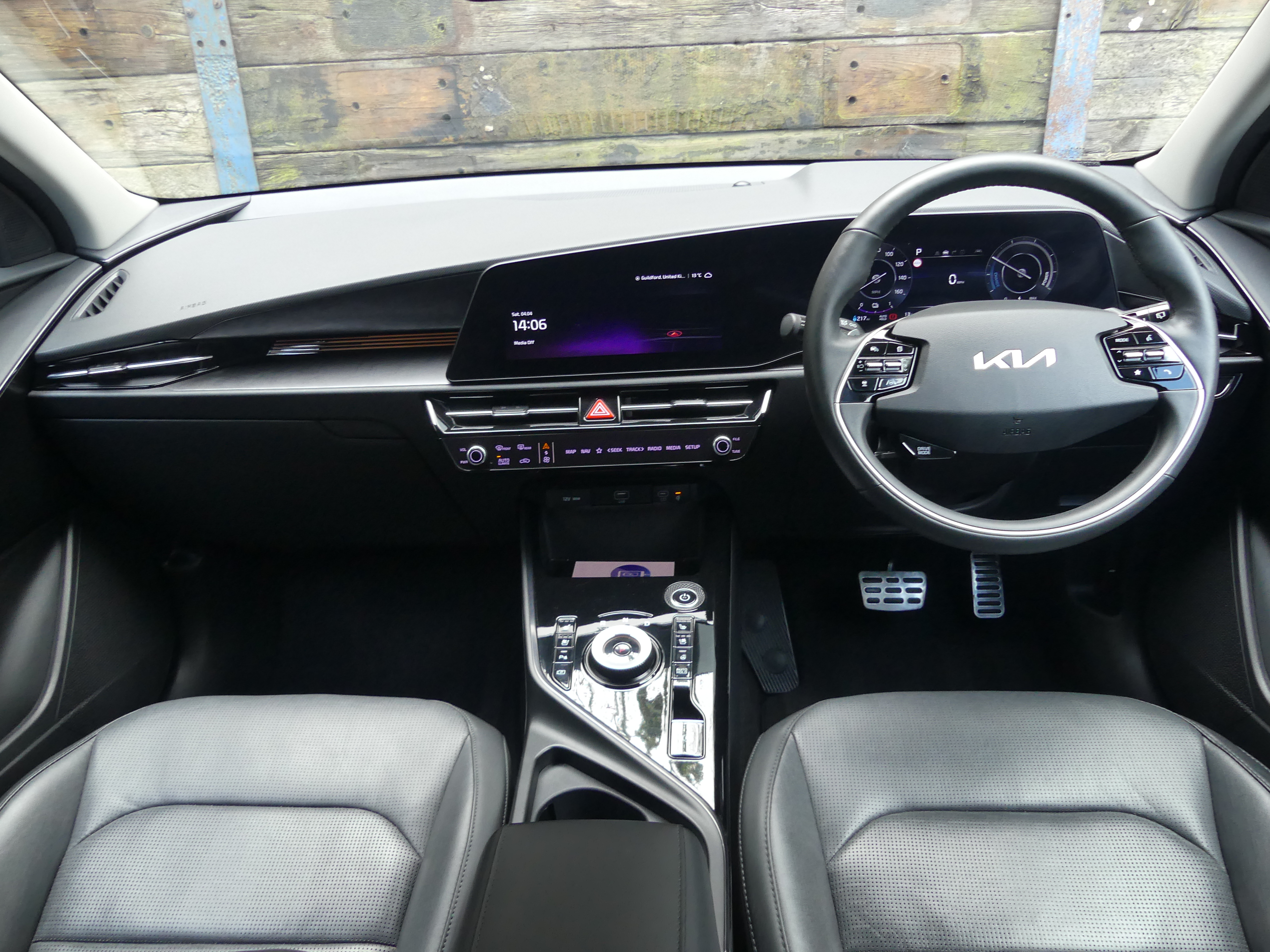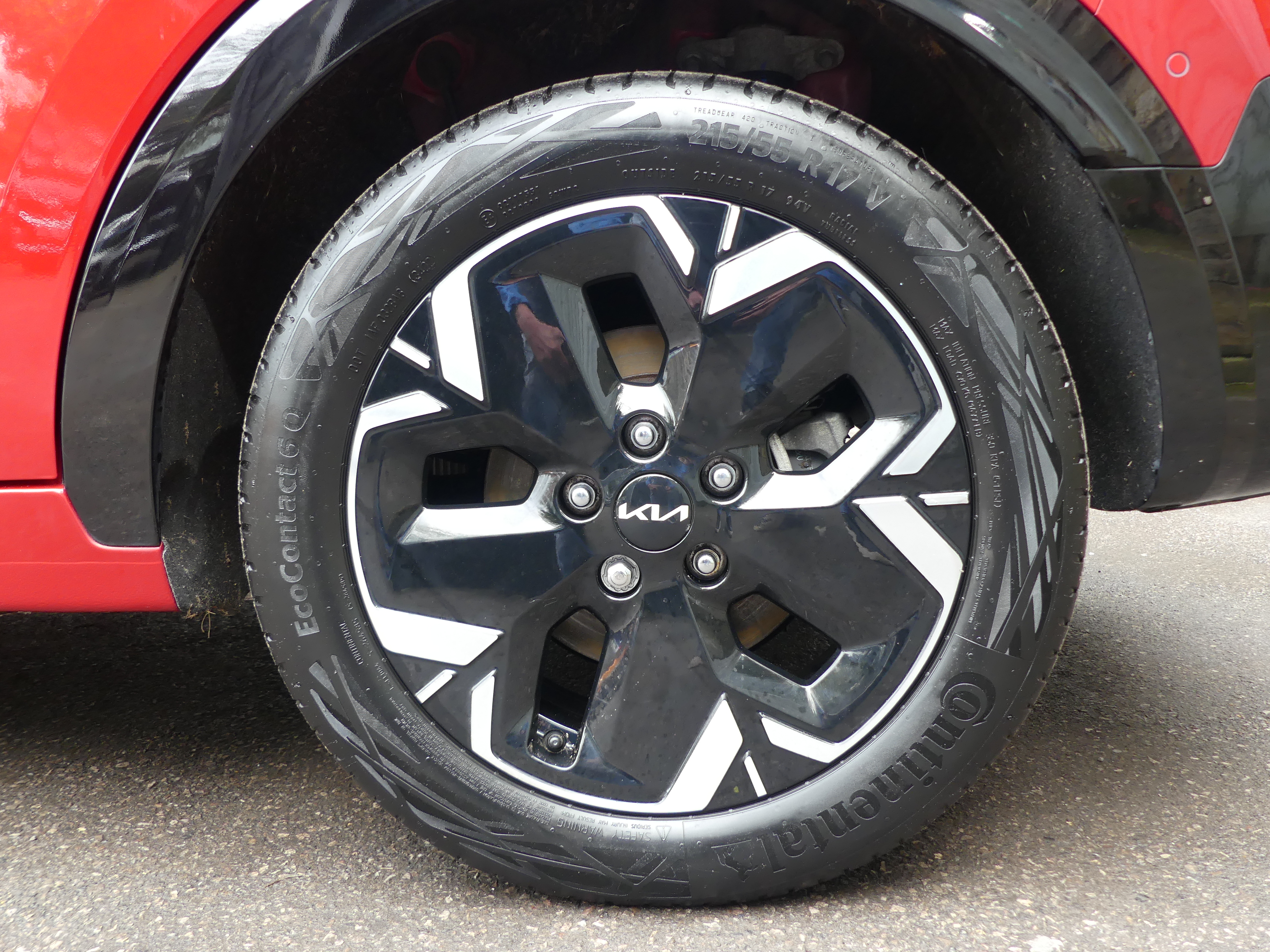 Reliable and comfortable crossover/estate which is super-efficient (around 240 realworld miles of range), single-pedal driving and a high-tech spec plus modern, smart, sustainable design. Classic Runway Red with five-petal 17” alloys and grey vegan leather interior. Android Auto/Apple CarPlay/Kia Connect, integrated 10.25" instrument cluster and touchscreen displays, sat nav, tilt and slide sunroof, LED head/rear and running lights with high beam assist, powered tailgate, keyless entry and wireless phone charger. Powered heated/ventilated front seats, adjustable lumbar support (driver memory), heated outer rear seats & steering wheel. Head-up display, Motorway Driving Assist, adaptive smart cruise control, speed limit assist, full safety suite (Forward Collision-Avoidance Assist, blind-spot monitoring, lane keep/follow assist, rear-cross traffic and safe exit). Parking camera, front/rear sensors and remote Smart Parking Assist. Full Kia service history (Oct 24). Full Kia warranty to Jan 2030. Battery health still at 100%. Type 2 fast charging cable and V2L adapter. Road tax £200 (no expensive car supplement). We are not tax experts but we know that electric cars benefit from very attractive company car tax (benefit in kind): £30-£66 a month in 2026/27. New list price is £42k! One previous owner and VAT Qualifying.
