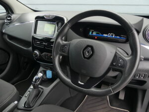 The ever popular and fully electric Zoe with a real-world range of up to 140 miles and tardis-esque for interior space. Dynamique Nav spec in Glacier White with a black cloth interior and 16” Aerotronic alloys. Spec includes Bluetooth and Android Auto connectivity, keyless entry, automatic lights and wipers, rear view camera and rear parking sensors, cruise control with speed limiter, climate control and 7-inch R-Link infotainment system with voice-controlled TomTom sat nav. Standard equipment includes DAB radio, music streaming, electric windows, auto headlights and windscreen wipers, and cabin preconditioning. This model is on a battery lease with Renault with a minimum monthly payment of £59 for the HV battery giving a forever battery warranty. Vehicle can also be purchased battery-owned - price on application. Six months’ EV specific warranty from Warranty Wise and a type 2 to type 2 EV charging cable is included. Renault service history (Jan 2024). ULEZ free and road tax/congestion charge free to 2025! 5* NCAP safety rating.