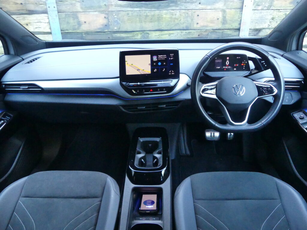 VW’s ultimate family EV with refined ride and handling, RWD stability and impressive manoeuvrability. Good for 240 miles of range (realworld) and fully rapid charges in under 40 minutes. On-trend in Moonstone Grey with grey Art Velours microfleece interior, panoramic roof with sunblind and 19” Hamar diamond cut alloys. Massive spec! Suite of safety and driver aids including adaptive cruise, predictive speed limiter, Front and Lane Assist, dynamic road sign display, oncoming vehicle braking, swerve support and fatigue detection. Clever ID.Light, matrix LED headlights with dynamic light assist and cornering. Discover Nav Pro infotainment with 10” touch-screen, DAB/music streaming, Bluetooth, Apple CarPlay/Android Auto. Park Assist Plus (self-parking), rearview camera plus sensors front/rear. Air Care Climatronic 3-zone A/C, heated front seats and steering wheel, heated windscreen, configurable multi-colour ambient lighting, keyless entry/go, variable bootfloor and privacy glass. We Connect ID.app. Battery health ahead of target at 95%. Full VW service history (Feb 25). Balance of VW HV battery warranty to Feb 2031/100k miles and 6 months' WarrantyWise from date of sale. Type 2 fast EV charging cable. Road tax £200 (no expensive car supplement). We are not tax experts but we know that electric cars benefit from very attractive company car tax (benefit in kind): £31-£70 a month in 2026/27. One previous owner and VAT Qualifying.