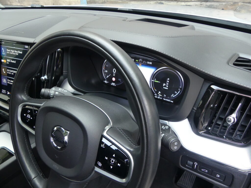 Comfort, quality and safety that are in Volvo’s DNA and quick: 0-62mph in 5.3 seconds. Refined handling and a luxurious interior make this highly desirable. 407bhp from a 2.0l turbocharged and supercharged petrol engine combined with an 87bhp electric motor make for a thrilling drive. The 10.4kWh HV battery has a theoretical range of 48 miles. Rare Inscription pro spec with upgrades. Premium bright silver with 20” 8 spoke diamond cut alloys, opening panoramic roof with curtain, sumptuous charcoal perforated nappa leather seats and crystal gear selector. Full suite of safety and driver aids: Pilot Assist, adaptive cruise, speed limiter, 12” driver display, head-up display, blind spot indicator, City Safety with steering support, Lane Keeping aid, road sign information and cross traffic alert. Park Assist self-parking, 360 degree camera plus sensors front and rear. Active 4-Corner Chassis: adaptive dampers with electronic air suspension. Sensus Connect, sat nav and Harmon Kardon surround sound. Heated seats front and rear, powered ventilated front seats with lumbar, memory and massage functions, dual-zone climate, heated steering wheel and handsfree tailgate. Full LED system with active bending headlights, cornering and adaptive shadow technology. Full Volvo service history (most recent June 25). Nearly new Goodyear tyres all round. Excellent brake condition: rear brakes 40% worn, front brakes 20% worn. Balance of Volvo HV battery warranty to Sept 2026/100k miles and 12 months WarrantyWise from date of purchase. MOT to 27 August 2026. Type 2 fast charging cable. Road tax £195 (no expensive car supplement). Two previous owners. Part exchange vehicle - too good for auction!